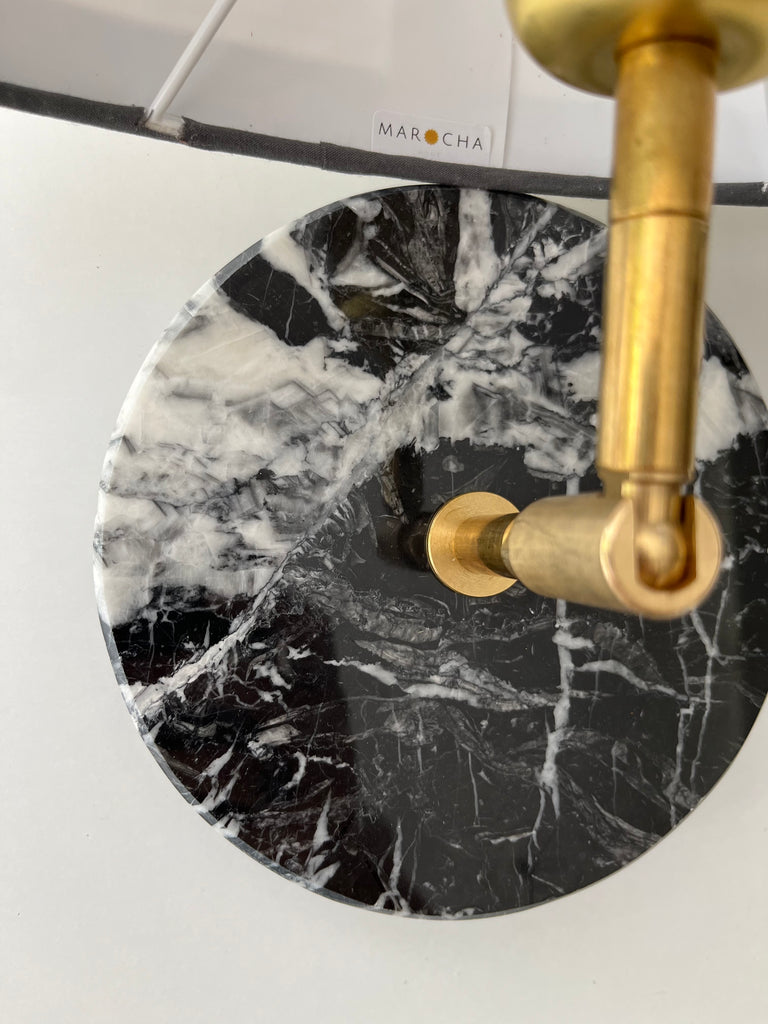 El latón es un metal con un efecto de color natural envejecido que puede cambiar de color con el paso del tiempo dando lugar al efecto pátina, se puede limpiar para darle brillo con un limpiador de metales. Las piedras de mármol, al ser un producto natural pueden tener algunas variaciones en color y textura, parte esperada del proceso de fabricación y acabado.