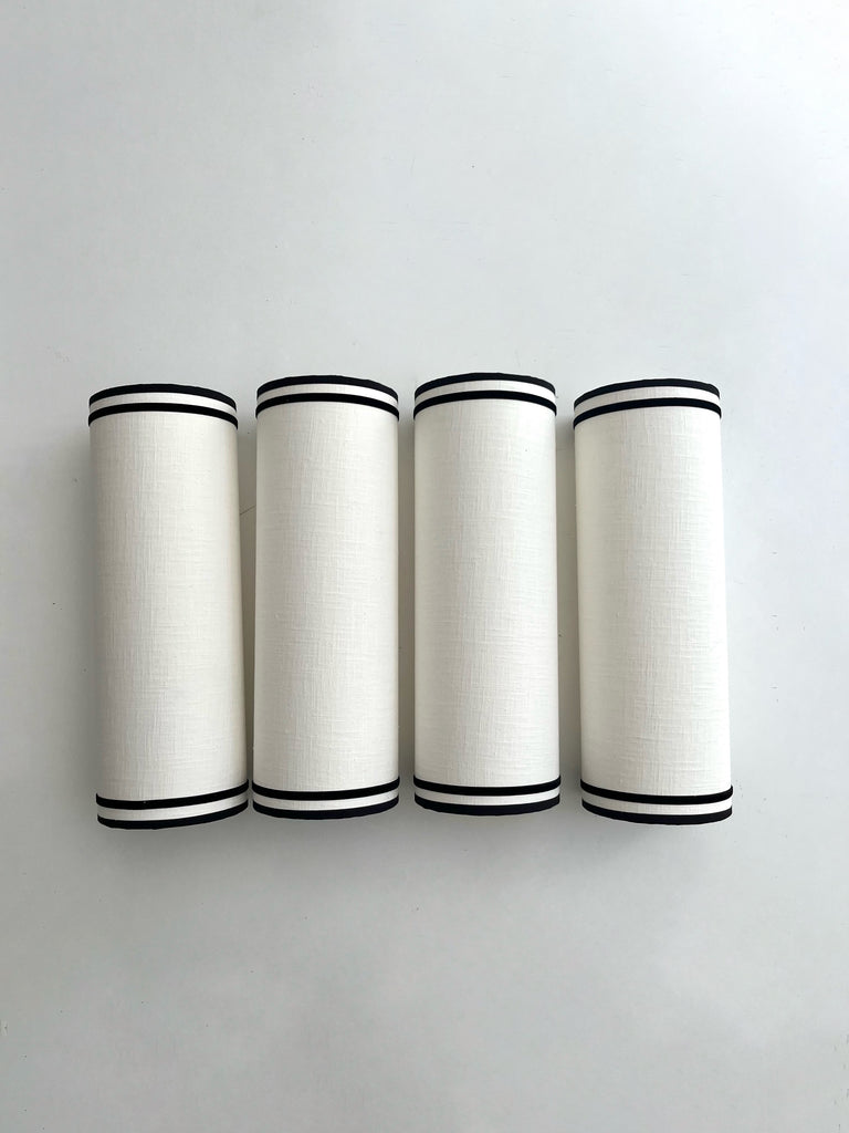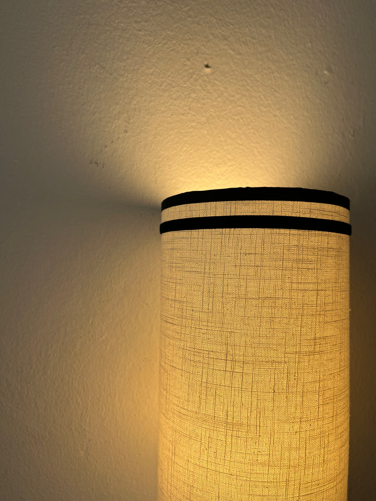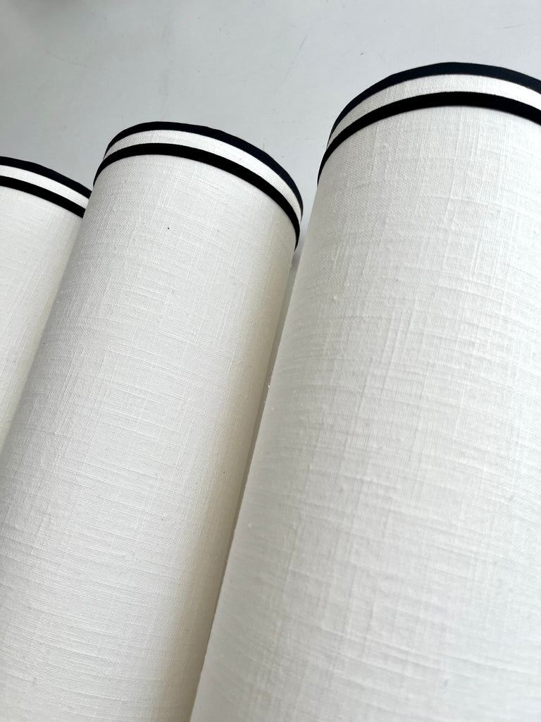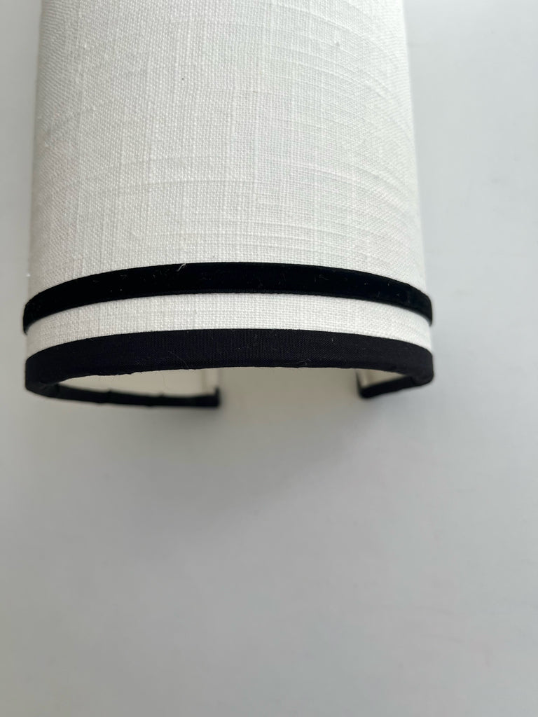 Aplique de pared de lino con perfil de algodón y cinta de terciopelo negro, hecho a mano.